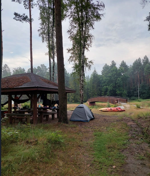 Koniec pierwszego dnia zalecamy zaplanować w Kielczy. Tutaj znajduje się nasza druga przystań kajakowa, w której można skorzystać z bieżącej wody i sanitariatu. To również bezpieczne miejsce na pozostawienie kajaków i sprzętu.